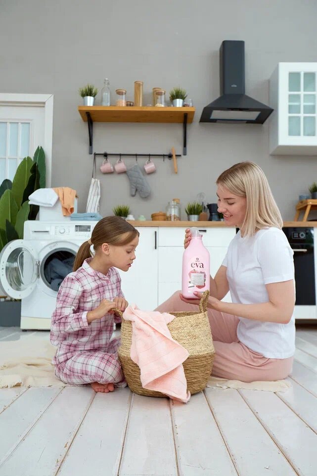 Для меня как для мамы это еще и возможность стирать детские вещи без всяких опасений. У моей дочки очень чувствительная кожа, и я всегда тщательно подбирала средства для стирки. С Eva все в порядке: ни раздражений, ни аллергий у дочери не было.